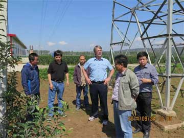 9月24日,农业部全国农技中心节水农业技术处高祥照处长与加拿大国际排灌委员会副主席、农业水分专家Laurie Tollefson在省、县相关部门领导的陪同下考察了宝鸡华圣果业有限责任公司基地。公司副总经理史继东详细介绍了基地自行研发的水肥一体化系统、苗木水肥施用情况及未来发展情况。 高处长及Laurie Tollefson对公司的水肥一体化系统了解后称赞了公司的创新能力,与公司技术人员就水肥施用、管道维护、苗木建设等问题进行了深入交流,提供了许多宝贵意见,并期望公司能够在创新发展之路上迈出新步伐。