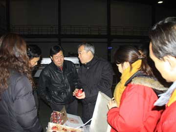 2014年1月15日下午,陕西省委科技工委委员、陕西省科技厅副厅长林黎明在农村处刘新安处长陪同下来我公司考察调研,在华圣集团总经理王魁的陪同下先后视察了公司果品加工车间、气调保鲜库、陕西省果品采后处理与贮藏保鲜工程技术研究中心,对果品加工过程中采取的质量保障高度关注,详细询问了公司运用的臭氧消毒系统和果品农药残留检验措施;对公司果品产销的全产业链的跟踪追溯系统予以高度肯定,指出企业责任对今后农业发展的重要性。 在随后进行的座谈会上,王魁总经理就公司成立以来在苹果产业发展方面所起的作用、陕西省苹果产业面临的形势、公司今后的发展方向等,对林副厅长一行做了详细汇报。林副厅长对我公司在果业领域的龙头地位和取得的成就给予赞赏和肯定,提出由企业牵头建设农业科技园区的构想,表示省科技厅在今后农业科技项目支持上,加大对校企合作模式的科技示范工作,重视选聘企业优秀的科技特派员,并希望公司大胆探索、勇于实践,进一步推动陕西苹果产业发展,提高陕西苹果在国际上的竞争性。
