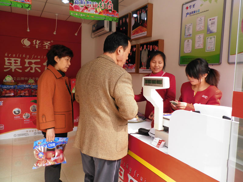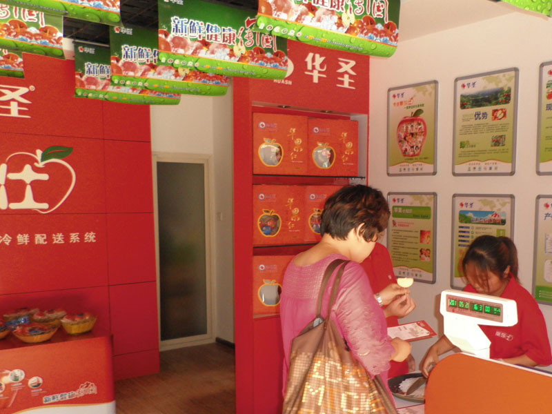 近日来,记者在古城西安看到,以华圣苹果特有的苹果红为主色调,装修简洁、清爽、高雅的"华圣果乐仕" 连锁直营店就像雨后的春笋,遍布古城西安的大街小巷。这是华圣果业打开国际高端市场之后,以全国一线城市为目标,开始了新型的经营模式,将"华圣"这一品牌延伸至消费者的身边,将农产品送进社区而迈出可喜的第一步。 截止2011年9月份,"华圣果乐仕 "连锁直营店在西安就有20家开张营业,北京有3家直营店开张营业。并且运行良好。记者在西高新区、北郊经开区、曲江开发区以及枫林绿洲等其他高中端社区华圣果乐仕直营门店看到,所销售的华圣苹果包括适宜家庭消费的小包装产品:轻量装3枚、4枚装、一提就走系列、称重产品,以及馈赠友人、家庭的礼品装、中国红礼盒、金牌优悦礼盒、华果红礼盒、9KG套箱等,来店购买华圣苹果的客人络绎不绝。 是什么原因让这些华圣果乐仕直营门店如此风生水起呢?陕西华圣果品营销管理有限责任公司经理张力告诉记者说:“:华圣果乐仕直营门店本着"让全球的消费者吃到最好的苹果"的理念和目标,以国际市场的标准倾力打造国内市场,以便让更多消费者可以安心、便利的吃上纯天然、无公害、安全放心的优质苹果。所以华圣果乐仕直营门店以高端消费群体为主要目标客户,2011年以西安市场为主,北京、上海为试点目标50家,如今年整体运行情况良好,下年度将进一步加快开店速度,争取在全国一线城市达到300家。”