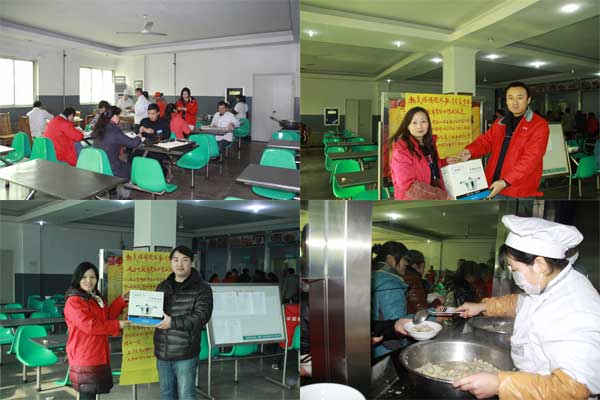 2012年12月21日是传统节气——冬至,为了让大家吃到可口的水饺,餐厅提前20天利用业余时间包制了各种各样的水饺。冬至当天,为活跃员工就餐气氛,行政部协同工会为大家准备了精美的礼品,把10个象征着吉祥团圆的桂圆分别包制在十个水饺中,十名吃到包有桂圆水饺的员工幸运中奖,他们兴高采烈地领到一个不锈钢汤锅。