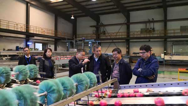 在公司执行总经理彭小强、果业工厂总经理李蕾陪同下,喻总经理、范副局长一行参观了气调仓储情况、工厂标准化生产流程,随后在华圣果业展厅总经理彭小强详细介绍了华圣果业的发展状况、规划以及全产业链种植、生产、销售模式。